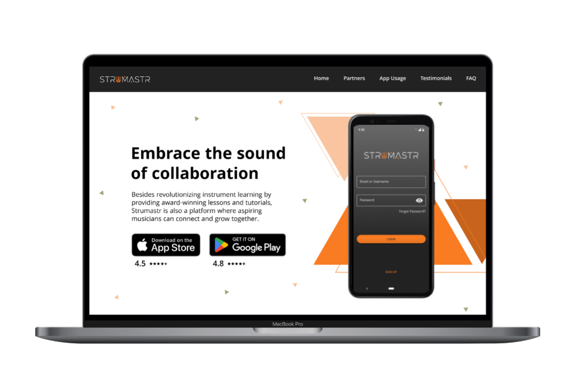 As a final touch to this project, I designed a responsive prototype for a marketing website, aimed at promoting this app’s unique features and benefits. The website serves as a powerful tool to captivate potential users and provide them with a preview of the features and vibrant community that Strumastr offers.